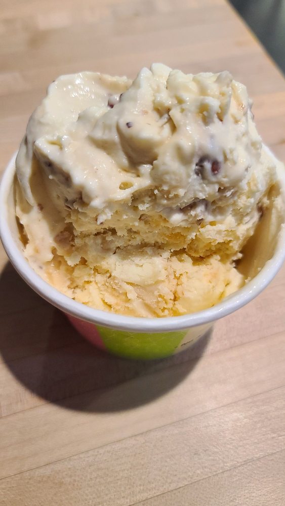 Vanilla ice cream mixed with buttercake pieces.